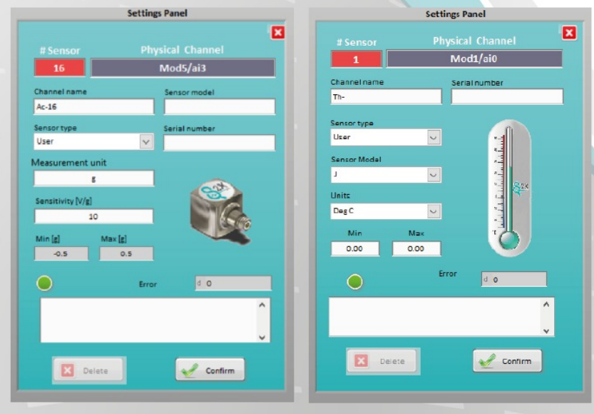 Per semplificare le operazioni di configurazione, il software consente di creare un database di sensori e/o di salvare configurazioni precedenti, velocizzando significativamente la tediosa fase di configurazione iniziale. Il software, inoltre, permette di eseguire acquisizioni dati in continuo o a soglia, con frequenza di campionamento impostabili dall'utente.